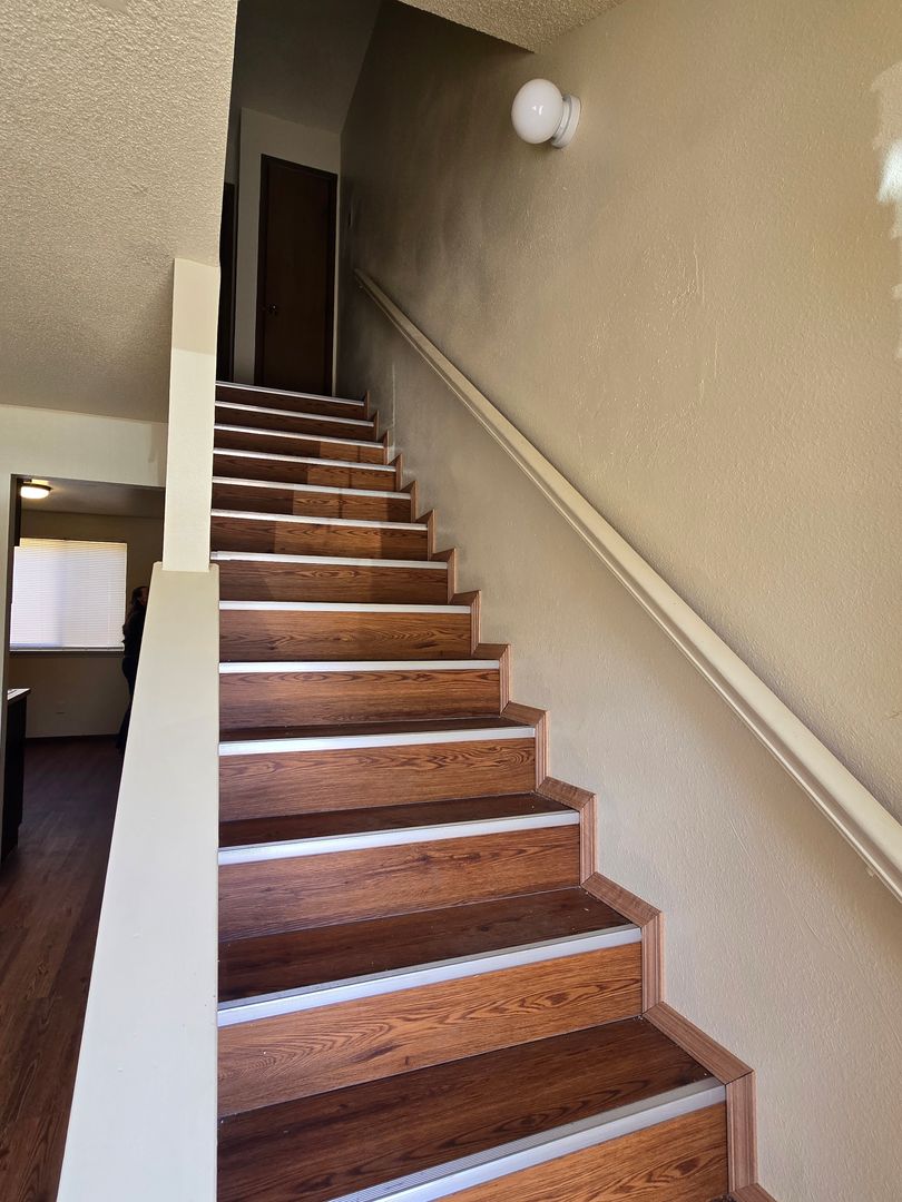 New Flooring and freshly painted 2 bedroom 1.5 bathroom, two story apartment.